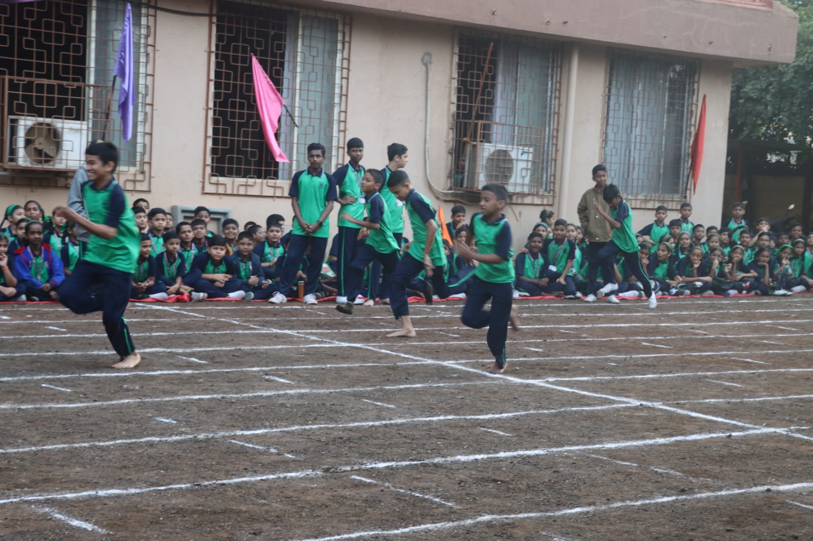 Our school celebrated the Annual Sports Day on 25th November 2025 at 7:00 a.m. with great enthusiasm. The day began with various sports events such as running, cone balancing, three-leg race, and standing jump. At 9:00 a.m., we welcomed our Honorable President Dr. Rajkumar Kolhe, Secretary Dr. Prerana Kolhe, and other dignitaries.