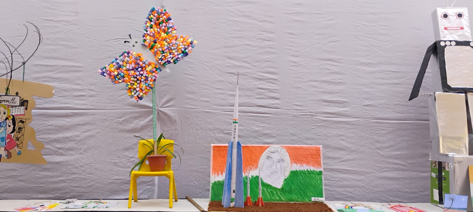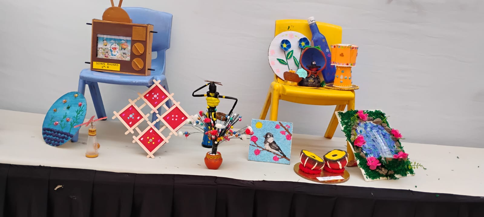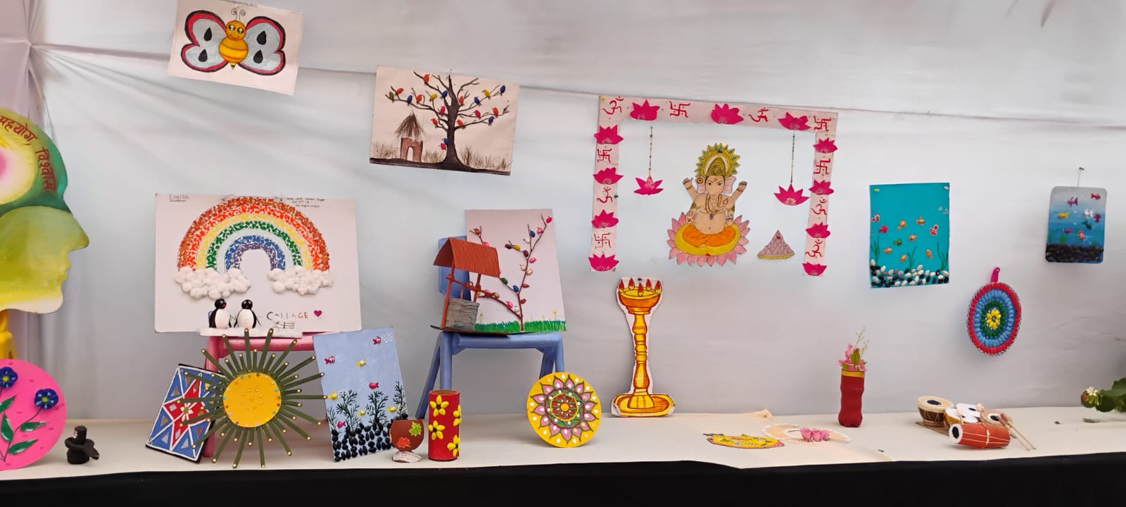 The main attraction was the Art and Craft Exhibition, where students showcased creative models like Kala Ghoda, peacock, and mushroom. The cultural programme included Ganesh Vandana, group songs by CBSE and State Board students, and a Kavita Sammelan by teachers.