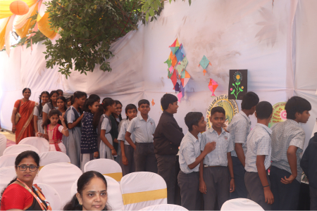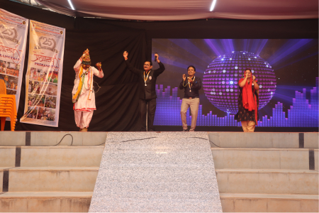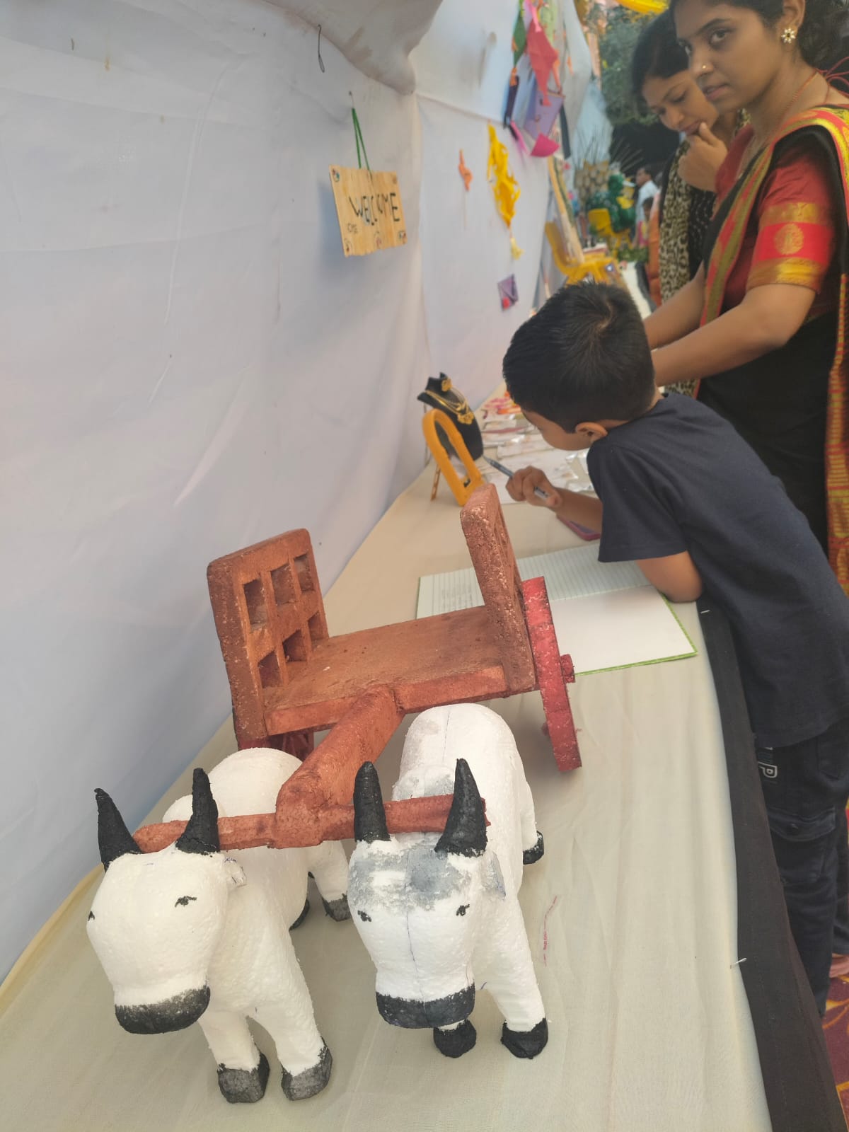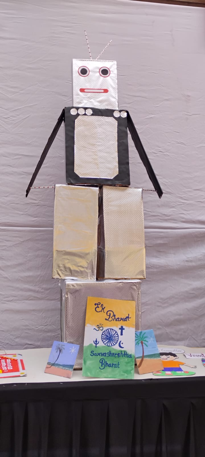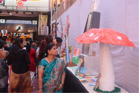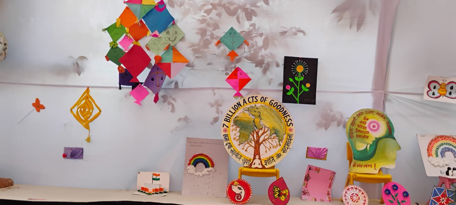 The main attraction was the Art and Craft Exhibition, where students showcased creative models like Kala Ghoda, peacock, and mushroom. The cultural programme included Ganesh Vandana, group songs by CBSE and State Board students, and a Kavita Sammelan by teachers.