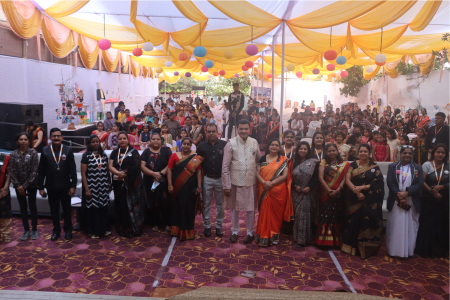 The programme began with the lighting of the lamp and garlanding of Goddess Saraswati, followed by a prayer song by Mrs. Shreya. Our honourable President Dr. Rajkumar Kolhe and Secretary Dr. Prerana Kolhe welcomed the chief guest Mrs. Boski Ashish Kubadia.